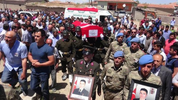 AĞRI Dağı bölgesinde arazi taraması sırasında yaklaşık 400 metrelik kayalıklardan düşerek ağır yaralanan, kaldırıldığı Erzurum Asker Hastanesi'nde şehit olan Jandarma Özel Hareket Uzman Çavuş Kazım Ay, memleketi Aksaray’da yaklaşık 10 bin kişi tarafından son yolculuğuna uğurlandı.