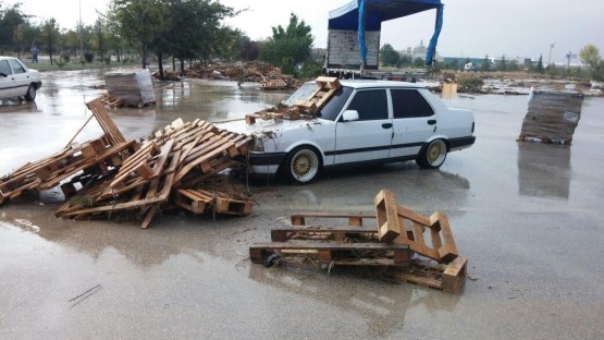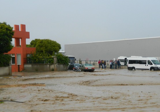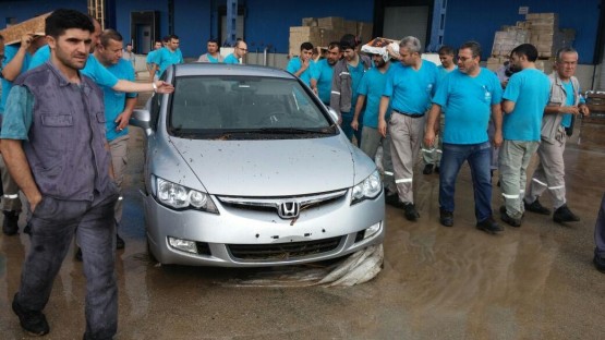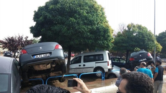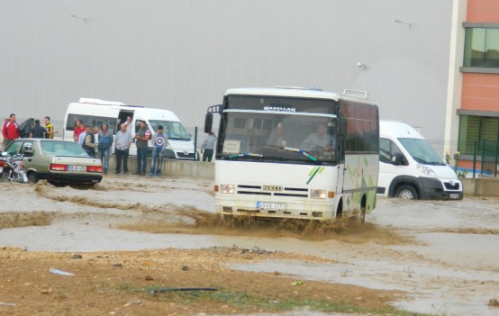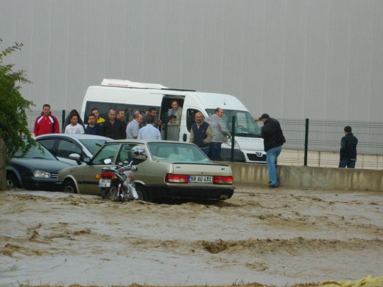 Organize Sanayi Bölgesi'ndeki cadde ve fabrika bahçelerinde bulunan çok sayıda araç sel sularında metrelerce sürüklendi ve üst üste çıktı. Fabrika işçileri suyun sürüklediği onlarca aracı cep telefonlarıyla görüntüledi.