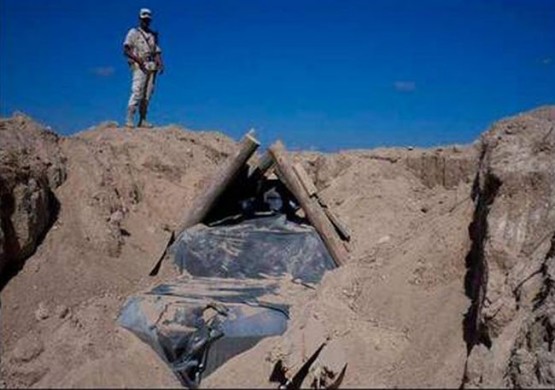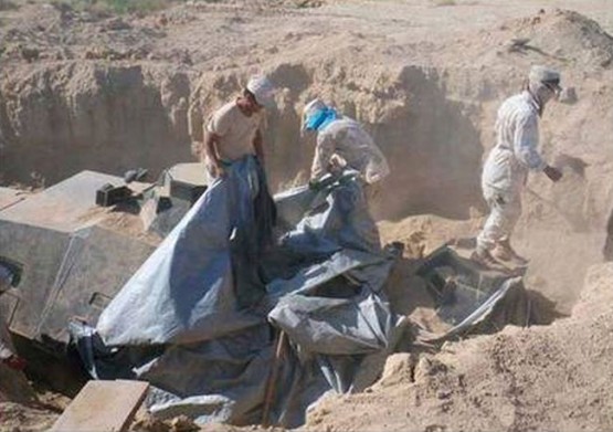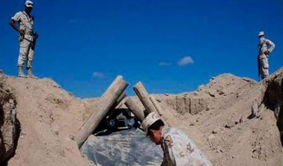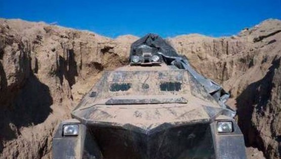 Özel olarak yapılan el yapımı bir zırlı araç ordu tarafından gömülü olduğu yerden çıkarılırken görülüyor.