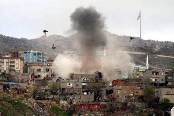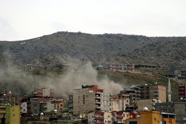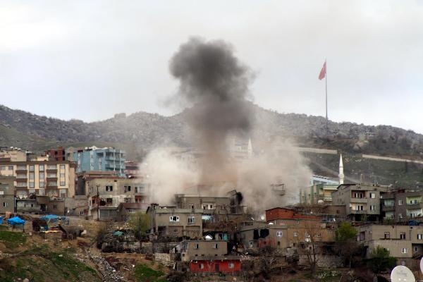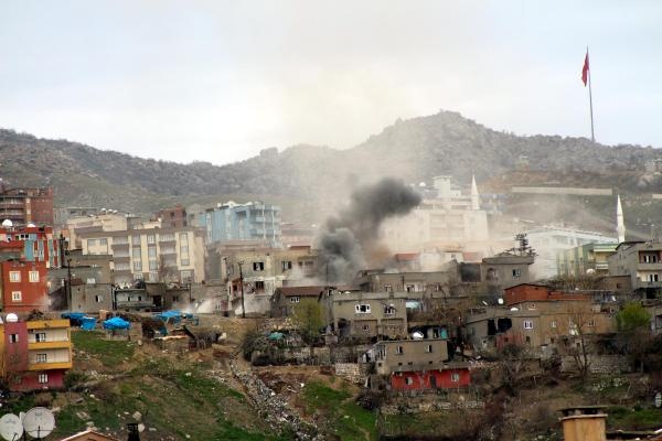 ŞIRNAK kent merkezinde güvenlik güçlerinin, hendeklerin kapatılması, barikatların kaldırılması ve PKK'lı teröristlerin etkisiz hale getirilmesi için başlattığı operasyonlar devam ediyor. Keskin nişancı PKK'lıların gizlendiği evlere de tanklardan top atışı yapılıyor.