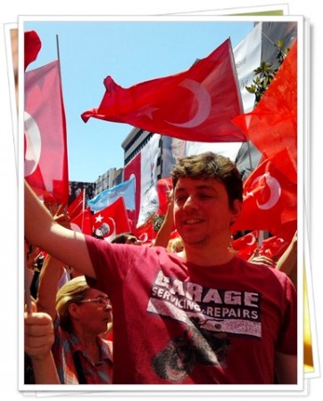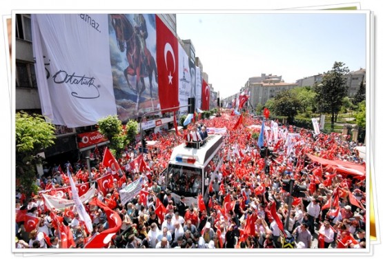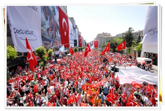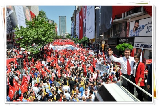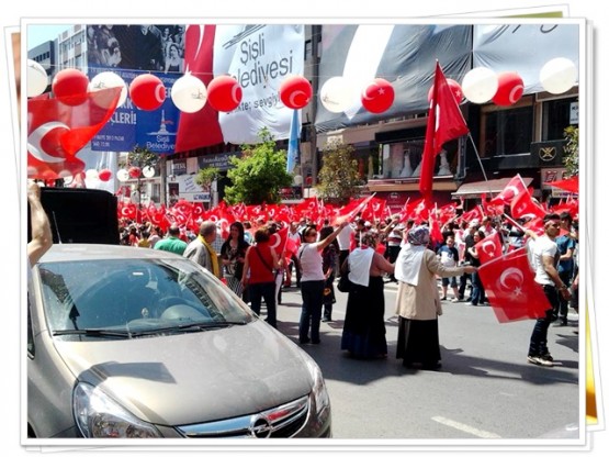 Daha sonra buradan 10. yıl Marşı eşliğinde yürüyüşe geçen yurttaşlar, yaklaşık iki kilometrelik bir mesafeyi 1 buçuk saatte katederek, Mecidiyeköy Cevahir Alışveriş Merkezi önündeki meydana kadar yürüdüler. Şişli Belediye Başkanı Mustafa Sarıgül de yurttaşlarla birlikte yürüyüşe katıldı.