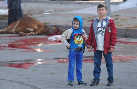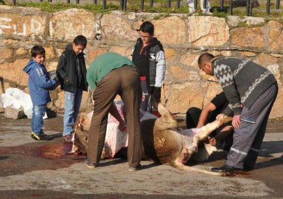 Çocuklar hayvanların kesim ve derisinin yüzme işlemlerini yakından takip etti. Kent merkezindeki alanlarda kesim yasaklarına uyulurken, kenar mahallelerde ise tüm uyarılara rağmen sokak ve ev önlerinde kesenler oldu. Sanayi sitesi içindeki dükkanlarda da kesimler yapıldı.