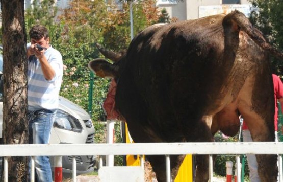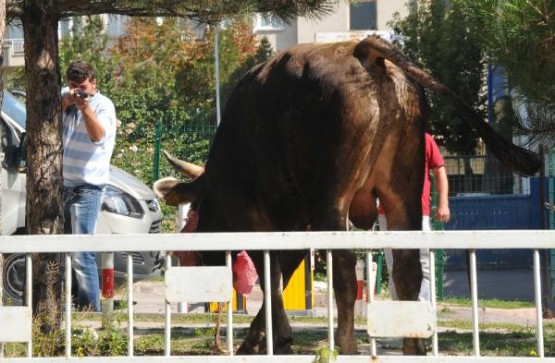 Sivas'ta Ata Sanayi Sitesi içerisinde kesim yapılmak için getirilen 7 hisselik boğa, zincirini kopartarak kaçınca caddede kovalamaca başladı. Bir teknoloji ürünü satılan bir marketin camını kıran boğa Kongre Lisesi'nin bahçesine girdi. Burada kıstırılan boğayı yakalamak için sahipleri polisten yardım istedi.