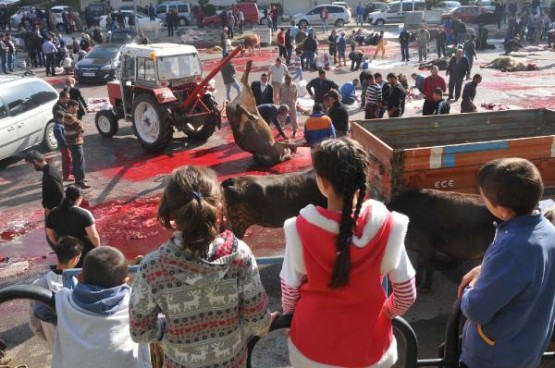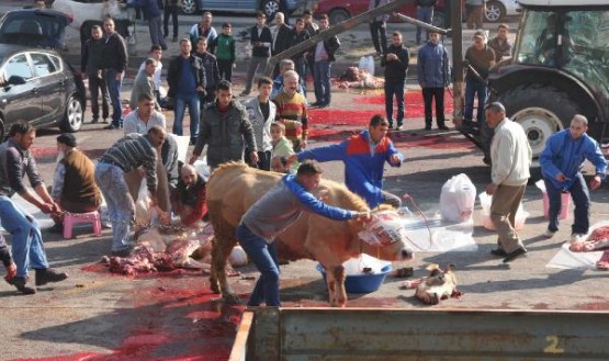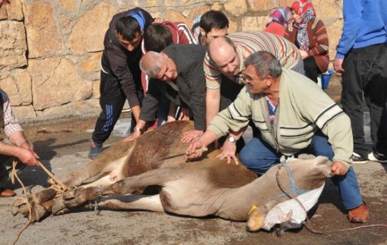 Kesim yerinde zaman zaman sahiplerinin elinden kurtularak kaçan büyükbaş hayvanlar çevredekilere zor anlar yaşattı. Kesim alanlarında tüm uyarılara rağmen yine çok sayıda çocuk getirildi.