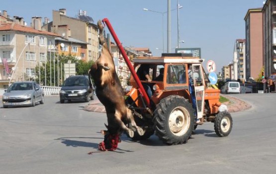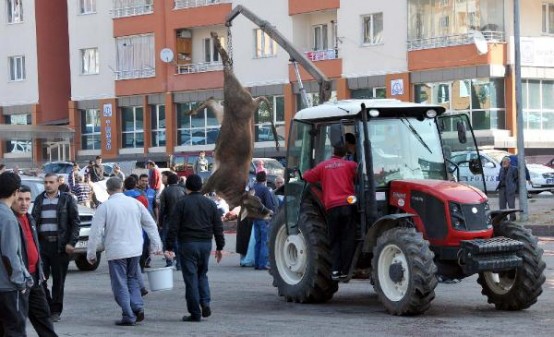 Sivas'ta sabah bayram namazının kılınmasının ardından kurban kesim yerlerinde hareketlilik yaşandı. Sabahın ilk saatlerinden itibaren Sivas Belediyesi'nin belirlediği kesim alanlarına akın edenler hayvanlarını kesti. Kesim yerlerine gelenlerin birçoğu hayvanlarını traktörlerin arkasına bağlanan vinçle kaldırarak kurban etti.