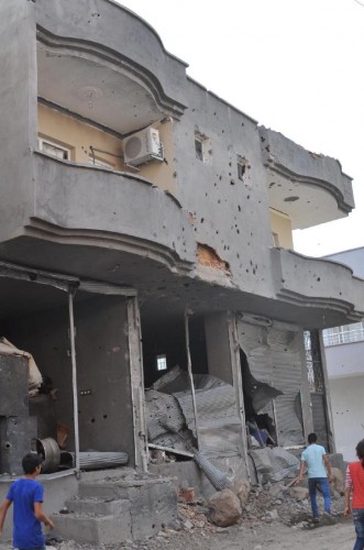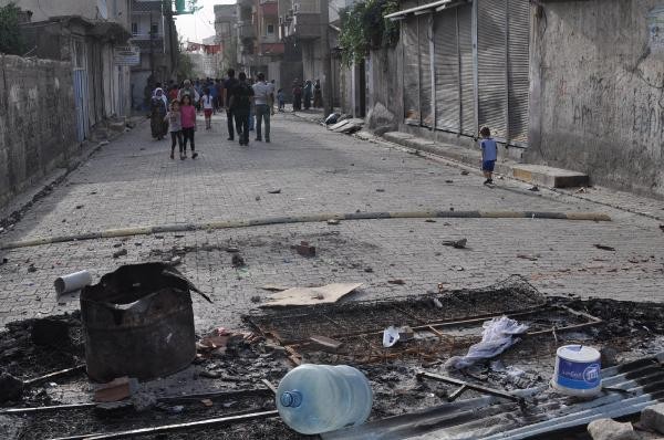 İlçede güvenlik güçleriyle PKK'lılar arasındaki çatışmaların yoğunlaştığı mahallelerde ev ve işyerlerinde hasar oluştu. Bazı binaların duvarları delik deşik olurken, cadde ve sokaklardaki yüzlerce boş mermi kovanları dikkati çekti. İlçenin birçok sokağında PKK'lıların güvenlik güçlerinin girişini engellemek için kazıp patlayıcılarla tuzakladığı hendeklerin tam kapatılmadığı, ancak bir çok barikatın sokaklardan kaldırıldığı dikkati çekti.