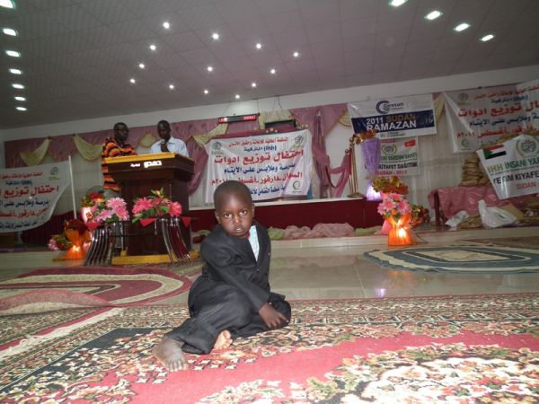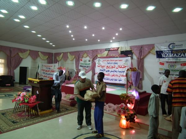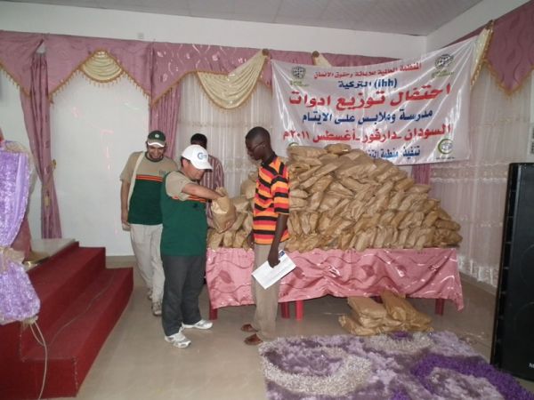 Darfur’a giriş için iki gün izin molası verdikten sonra yardım bölgesi Niyala’ya ulaşan İHH ve partner kuruluş temsilcileri önce yetim çocuklara kırtasiye ve giyecek yardımında bulundu.