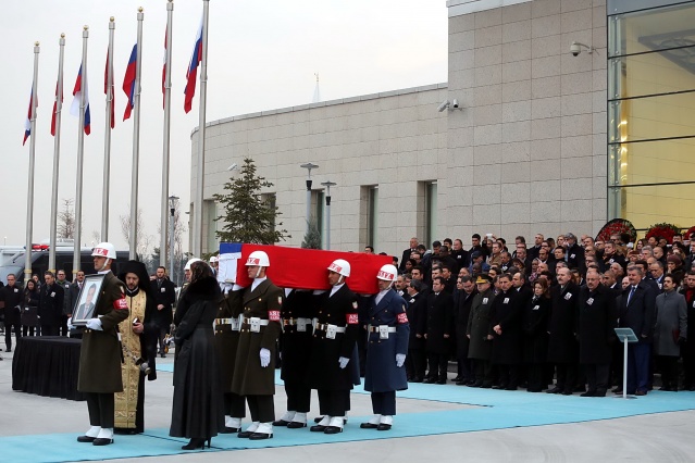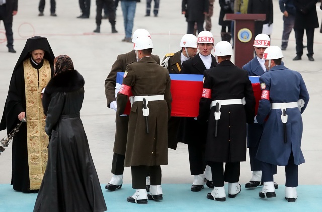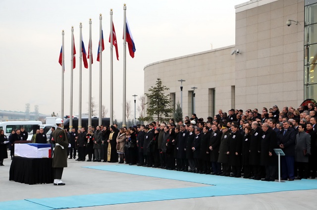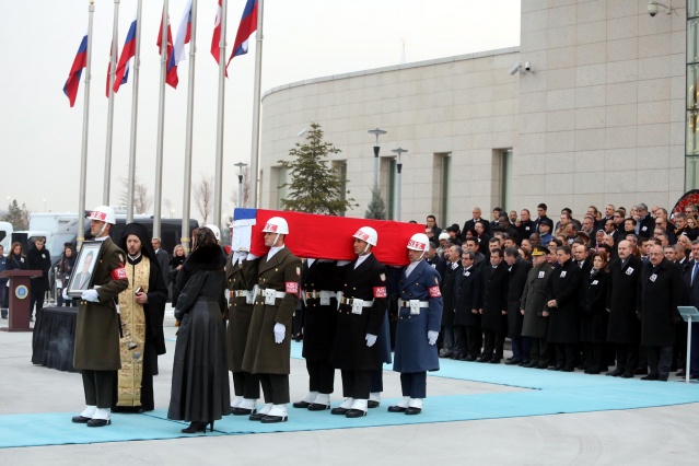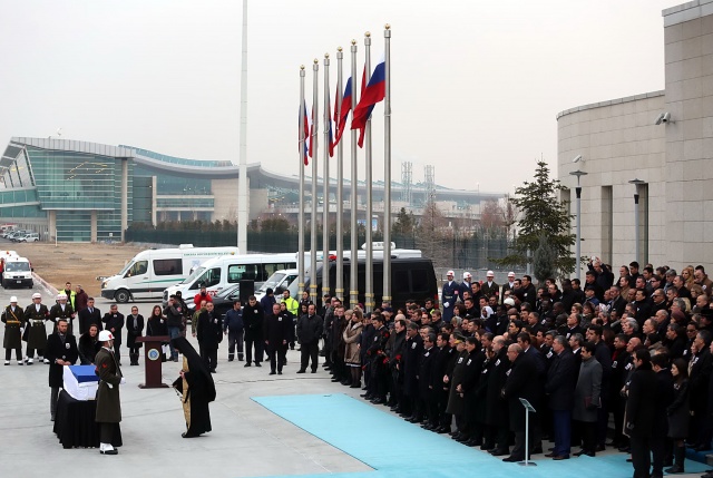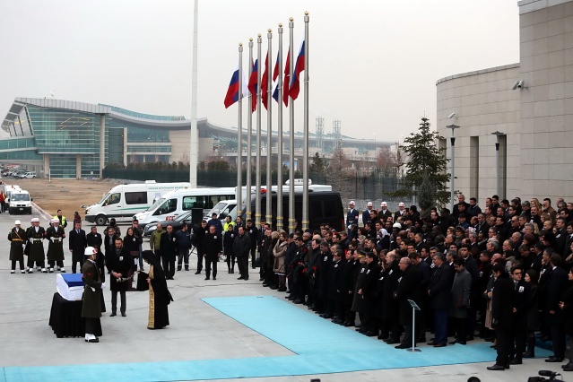 UĞRADIĞI silahlı saldırı sonucu hayatını kaybeden Rusya'nın Ankara Büyükelçisi Andrey Karlov'un naaşı Ankara Esenboğa Havalimanında düzenlenen devlet töreniyle Moskova'ya uğurlandı.