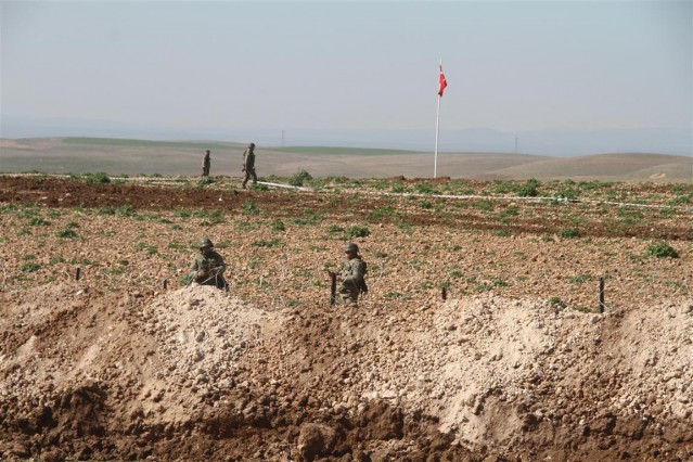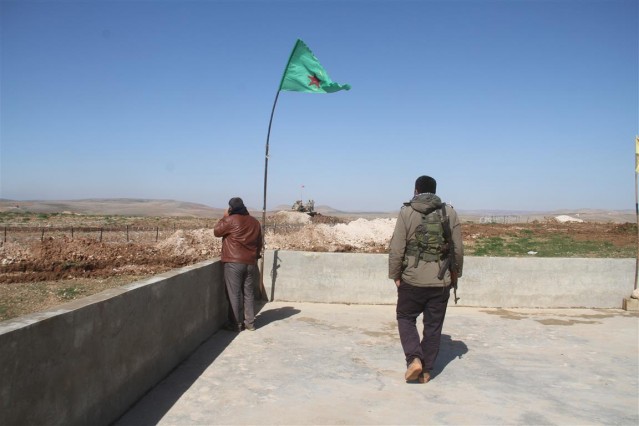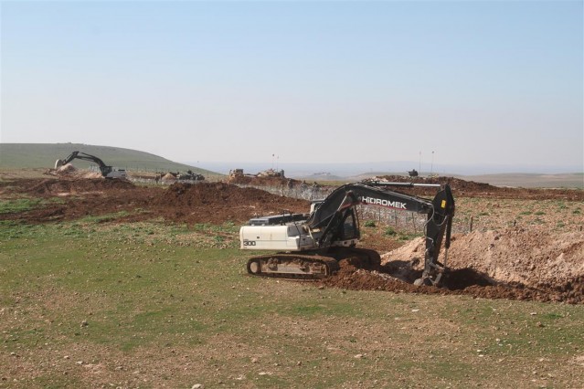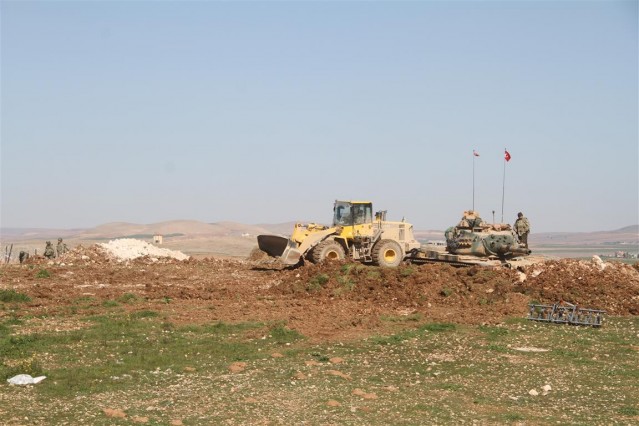 IŞİD tehdidinin artması nedeniyle TSK'nın operasyonuyla tahliye edilen Süleyman Şah Türbesi'nin, Türkiye sınırına çok yakın noktadaki Eşme köyüne taşınması için yapılan hazırlıklar YPG'nin kontrol noktalarından fotoğraflandı.