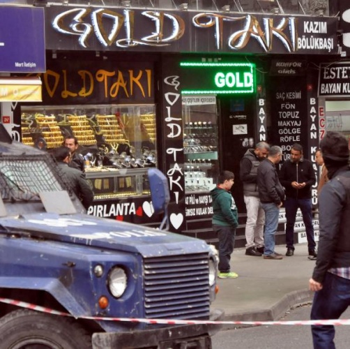 SULTANGAZİ’de yüzleri maskeli ve pompalı tüfekli 4 kişi, bir kuyumcu dükkanından yaklaşık 80 bin TL değerinde altın alarak kaçtı. Soygun anı, kuyumcunun güvenlik kameralarına saniye saniye yansıdı. Soyguncular parmak izi ve delil bırakmamak için kaçtıkları otomobili ise benzin dökerek yaktı.