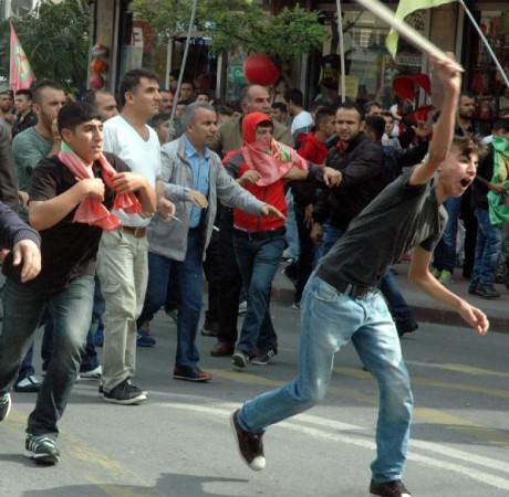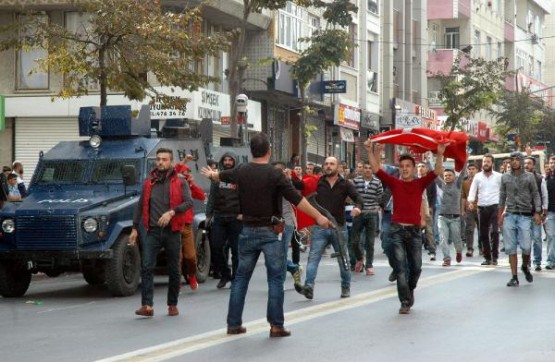 Çevik kuvvet polisi ise gruba biber gazı kullanarak müdahale etti. Grup ara sokaklara kaçtı. Bu arada ellerinde Türk bayraklarıyla caddeye çıkan vatandaşlar DBP’lileri protesto etti. Grubun üzerine yürümek isteyen vatandaşları polis engelledi.