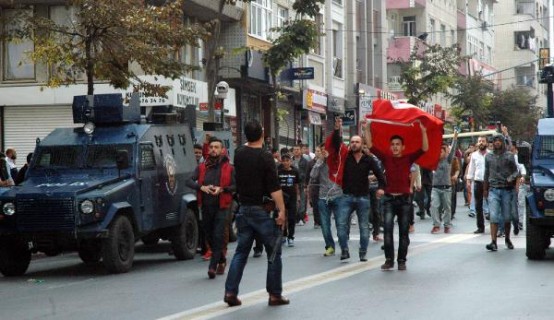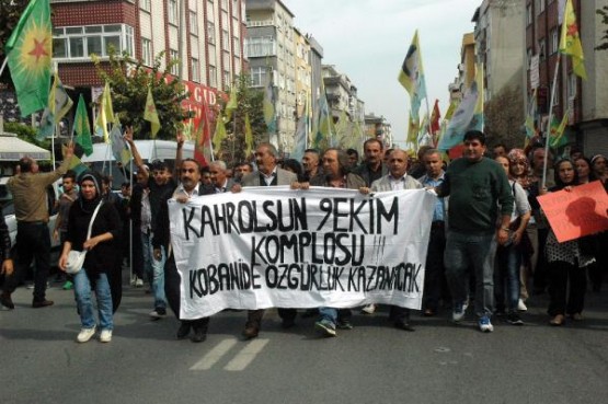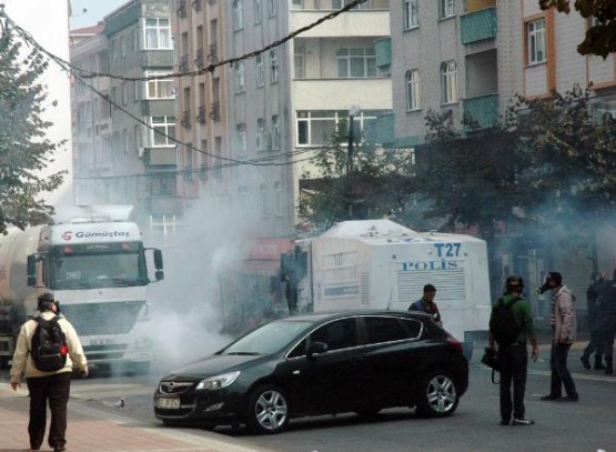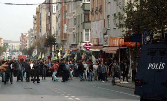 KOBANİ'deki olaylarla ilgili basın açıklaması yapmak isteyen bir grup, Demokratik Bölgeler Partisi Sultangazi ilçe binası (DBP) önünde toplandı. Cebeci Caddesi'nde AKP İlçe binasına Abdullah Öcalan posterleriyle yürümek isteyen yaklaşık 500 kişilik grup caddeyi trafiğe kapattı.