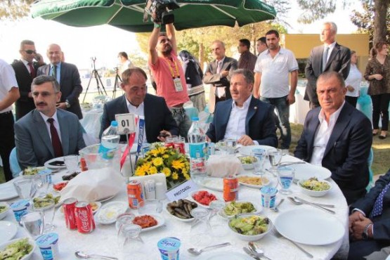 Manisa Organize Sanayi Bölgesi Lokali'ndeki yemeğe Manisa Valisi Erdoğan Bektaş, MHP'li Manisa Büyükşehir Belediye Başkanı Cengiz Ergün, Ak Partili Manisa Milletvekilleri Hüseyin Tanrıverdi, Selçuk Özdağ, Muzaffer Yurttaş, Manisa 1. Eğitim Tugay Komutanı Tuğgeneral Yavuz Ekrem Arslan, Türkiye Futbol Federasyonu Başkanı Yıldırım Demirören, TFF 1. Başkan Vekili Servet Yardımcı, 2. Başkan Vekili ve Spor Genel Müdürü Mehmet Baykan, TFF Profesyonel Kurul Başkanı ve İcra Kurulu Üyesi Arif Koşar, A Milli Takımlar Teknik Direktörü Fatih Terim, Fenerbahçe Yönetim Kurulu Üyesi Mahmut Uslu, Divan Başkanı Vefa Küçük, Galatasaray 2. Başkanı Özkan Olcay, Galatasaray A.Ş CEO'su Lütfü Arıboğan ve Soma'daki faciada yakınlarını kaybeden madenci aileleri katıldı.