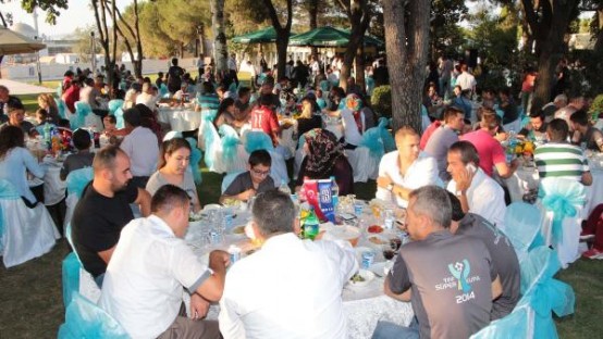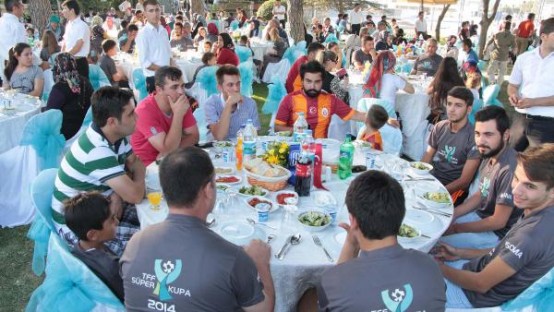 TÜRKİYE Futbol Federasyonu Başkanı Yıldırım Demirören ve yönetim kurulu üyeleri, Soma'daki maden faciasında yakınlarını kaybedenlerin ailelerine Fenerbahçe ile Galatasaray Futbol takımları arasında oynanacak Süper Kupa maçı öncesinde yemek verdi. Yemekte (TFF) tarafından Soma'da yaptırılacak TFF Futbol Okulu için protokol imzalandı.
