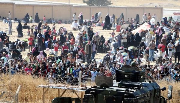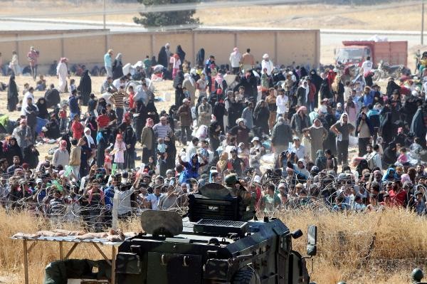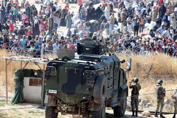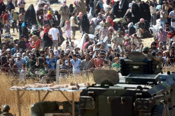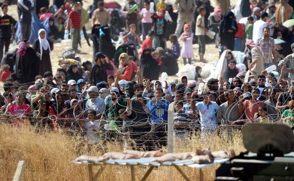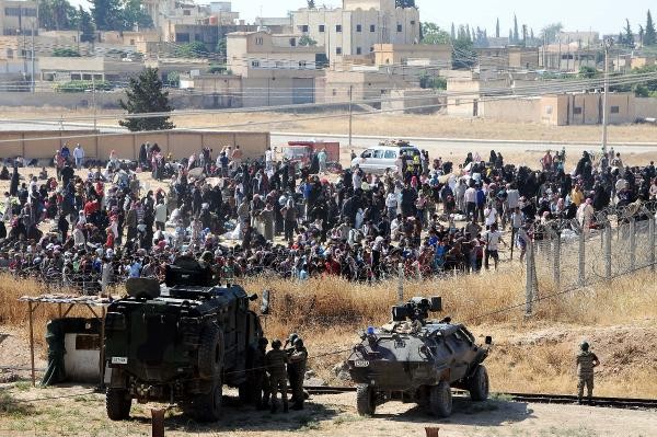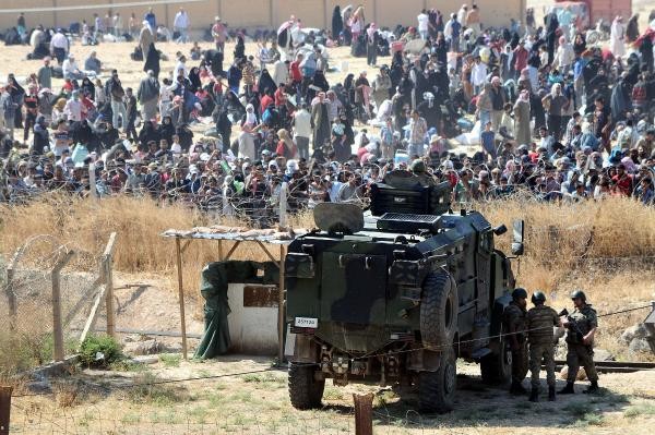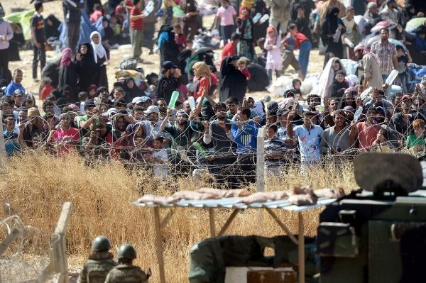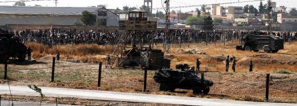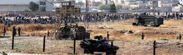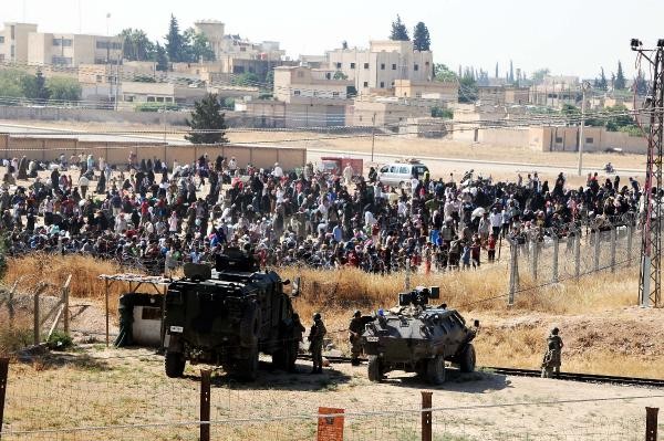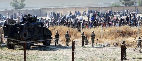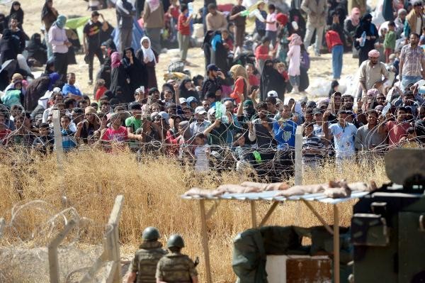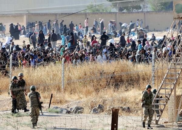 SURİYE'nin Telabyad kentinden kaçan binlerce Suriyeli'nin Türkiye sınırındaki bekleyişi sürüyor. Sınır hattında toplanan ve IŞİD militanlarınca dün sınırdan geri döndürülmek istenen kalabalık, bu sabah ellerindeki boş pet şişeleri birbirine vurarak su istedi. Sık sık Türkiye lehine slogan atan kalabalık, 35 derece sıcaklıkta geçişlerine izin verilmesini bekliyor.