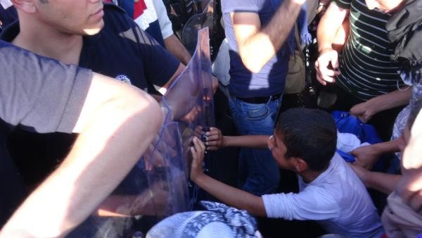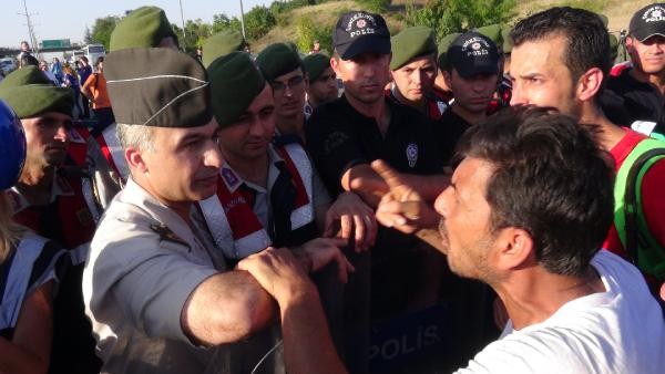 Avrupa ülkelerine gitme umuduyla yürüyerek geldikleri Edirne’de 4 gündür TEM otobanı kenarında kamp yapan, ardından yürüyüşe geçen grup, kent merkezine 3 kilometre kala jandarma ve polis ekiplerince durduruldu. İkna çabalarına rağmen yürümek ve Yunanistan sınırına gitmek isteyen yaklaşık 1500 kadar Suriyeli, güvenlik güçlerine saldırdı. Jandarma ve polis engelini aşmak isteyen sığınmacılarla güvenlik güçleri arasında zaman zaman arbede yaşandı. Polis ve jandarma ekipleri ise herhangi bir müdahalede bulunmadı.