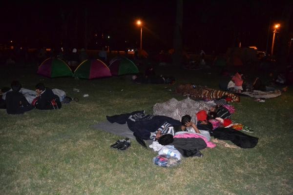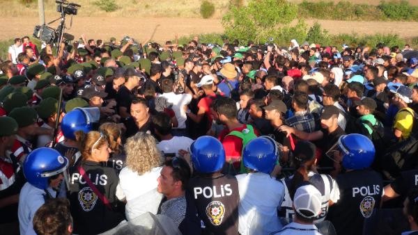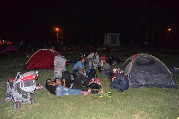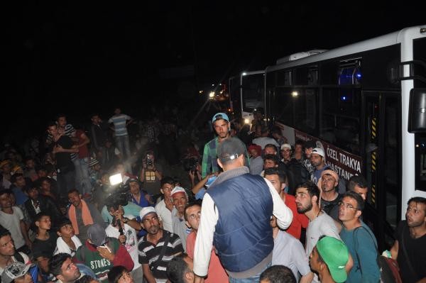 Edirne Belediyesi’nin tahsis ettiği otobüslere bindirilen Suriyeliler, Kırkpınar Yağlı Güreşleri’nin yapıldığı Sarayiçi mevkiine getirildi. Güreşlerin yapıldığı Ermeydanı’na ‘Bizi kilitlerler’ endişesiyle girmek istemeyen Suriyeliler, Sarayiçi’ndeki çimenlik alanlarda çadır kurdu. Yardım dernekleri de sığınmacılara su ve gıda dağıttı.