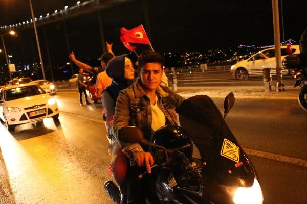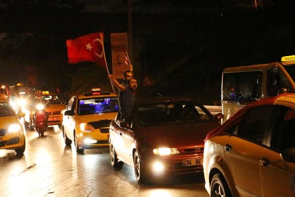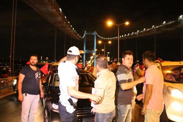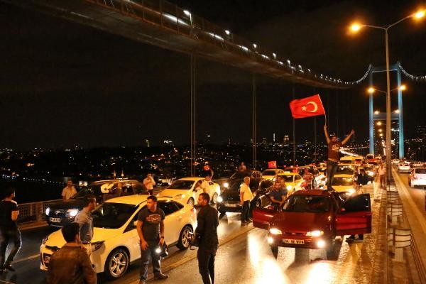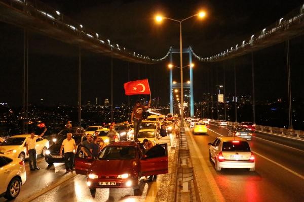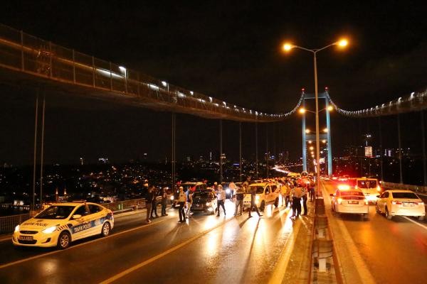 Konvoy daha sonra Bomonti Tüneli'nden Beşiktaş Meydanı'na inerek Boğaz Köprüsü'ne ilerledi. Taksi sürücüleri saat 23.40 sıralarında köprünün tam ortasına geldiğinde kontak kapattı. Araçlarından inen taksiciler, köprü üzerinde “Şehitler ölmez Vatan bölünmez" sloganları eşliğinde Türk bayrağı açtı. Karşı şeritten Avrupa Yakası'na ilerleyen bazı sürücüler de korna çalarak protestoya destek verdi. Bu sırada köprü koruma polisleri olay yerine geldi. Polislerle yapılan kısa görüşmenin ardından taksiciler araçlarına binerek köprüden ayrıldı. Yaklaşık 10 dakika trafiğe kapanan Boğaz Köprüsü'nün Ankara İstikameti'de tekrar ulaşıma açıldı.