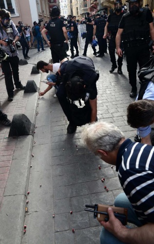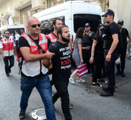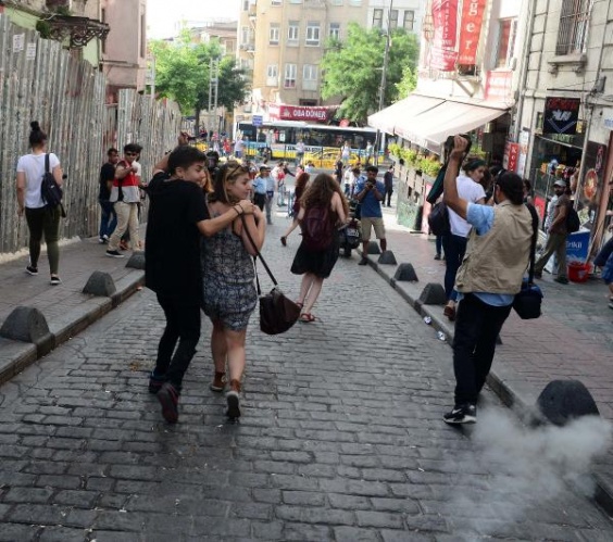 Valiliğin yürüyüşüyasaklamasının ardından Taksim'de geniş güvenlik önlemi alan polis, gruba dağılmaları yönünde uyarıda bulundu.Grup üyeleri yürüyüşüne devam etmek isteyince polis müdahalede bulundu. Biber gazlı müdahale sonrası grup üyeleri ara sokaklara kaçtı.