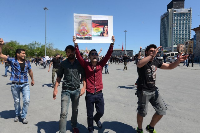 Türkiye'ye gelen Suriyeli Kürtlerden oluşan gruptan 5 kişi gözaltına alındı. Taksim Meydanı'nda saat 14.30 sıralarında toplanan yaklaşık 100 kişi, İran'da cinsel saldırıdan kurtulmak için intihar ettiği iddia edilen Ferinaz Hosreveni'nin fotoğraflarını açtı.. Kuzey Irak Bölgesel Kürt yönetimi bayrağı taşıyan grup slogan atmaya başladı. Bu sırada ilk müdahale meydanda bekleyen sivil polislerden geldi.