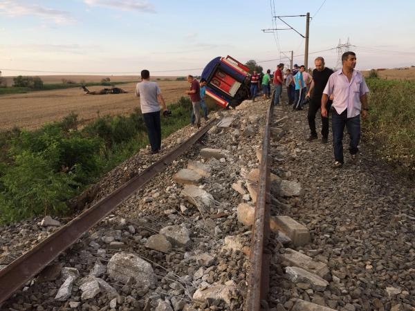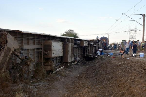 EDİRNE'nin Uzunköprü ilçesi ile İstanbul Halkalı seferini yapan yapan yolcu treninin 6 vagonu, Tekirdağ'ın Muratlı ile Çorlu ilçeleri arasındaki Sarılar Mahallesi'nde raydan çıkarak devrildi. kazada ilk belirlemelere göre , 10 kişinin yaşamını yitirdiğini, 73 kişinin de yaralandığını bildirdi.