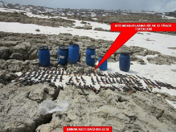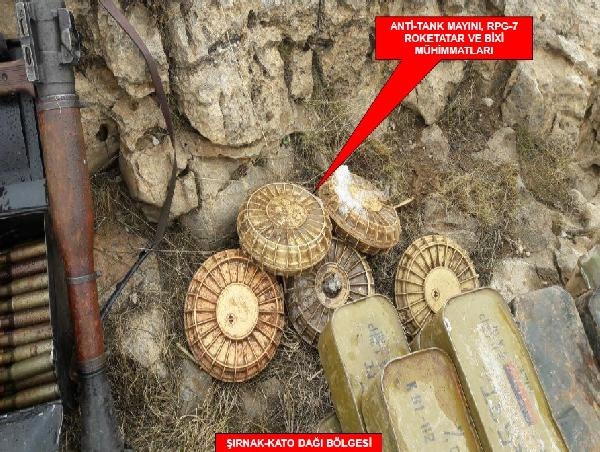 - TÜRK Silahlı Kuvvetleri (TSK), 19 Nisan'dan bu yana Şırnak'ın İncebel ve Kato Dağı bölgesinde terör örgütü PKK'ya yönelik başlatılan operasyonların devam ettiğini açıklayarak, teröristlerin kullandığı tespit edilen 25 mağarada yapılan aramalarda çok sayıda silah, mühimmat, teçhizat ve yaşam malzemeleri bulunduğunu açıkladı. Açıklamada, bugüne kadarki operasyonlarda en kapsamlı silah ve malzemelerin ele geçirildiği vurgulandı.