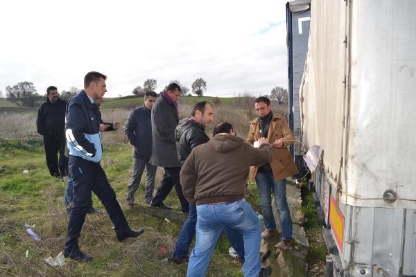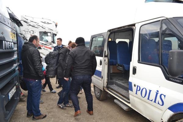 TEKİRDAĞ’ın Çerkezköy İlçesi’nde, gümrük işlemleri için parkta bekleyen bir TIR’a gizlice binerek Avrupa ülkelerine gitmek isteyen 13 Suriye uyruklu kaçak, sürücünün dikkati sayesinde yakalandı.