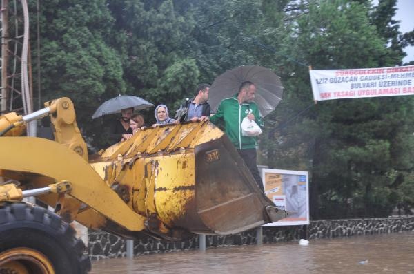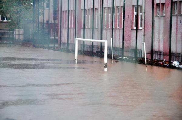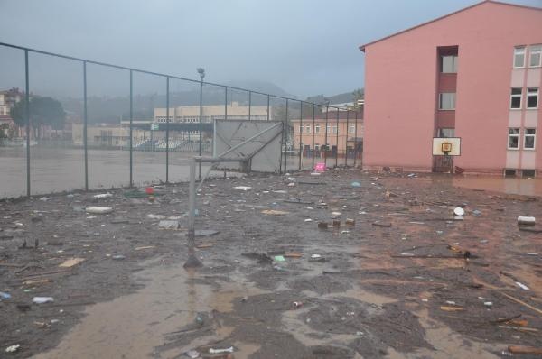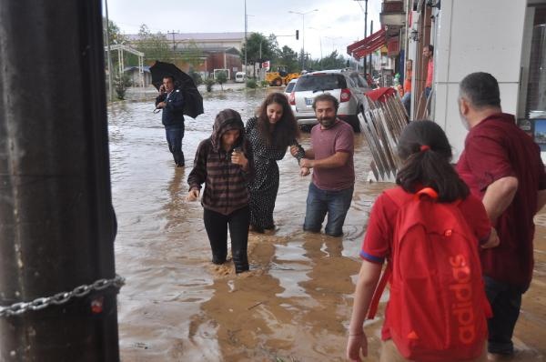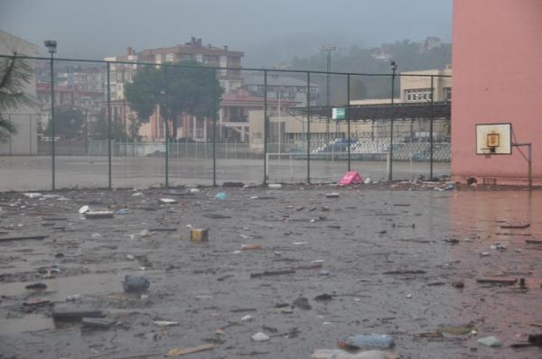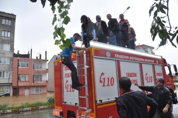 Beşikdüzü İlçesi'nde öğleden sonra etkili olan yağış sırasında çevresi suyla dolan Merkez İlkokulu’nda kalan öğretmenler ve öğrenciler, akşam saatlerine kadar su çekilmeyince, itfaiye araçlarıyla okuldan çıkartıldı. En üst kata çıkan öğretmen ve öğrenciler, itfaiye araçlarının merdivenleriyle binadan alınarak çıkarılabildi.