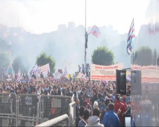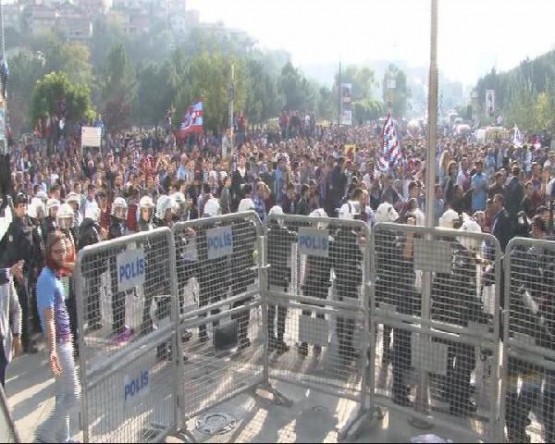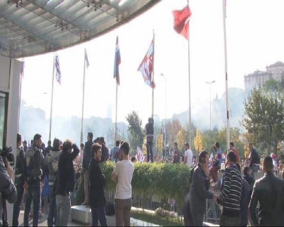 Bu arada protestolarını sürdüren taraftarlar, polisin kurduğu barikatı yıkmaya çalışınca kısa süreli arbede yaşandı. Daha sonra ise taraftarlar TFF binasına taş ve pet şişe fırlatmaya başladılar. Polis, taraftarların dağılmaları için anonslarını sürdürüyor.