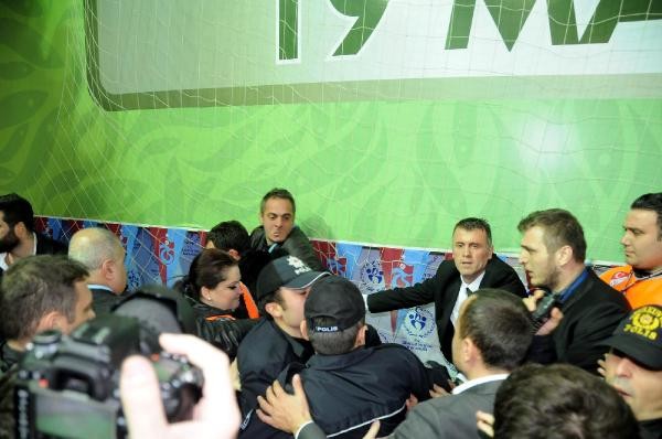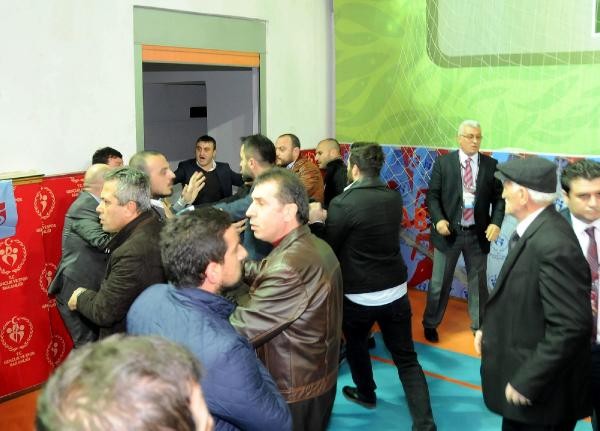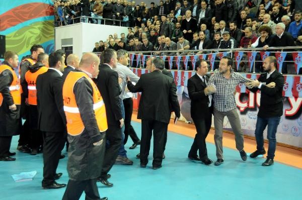 Bir çok üye tribünden spor salonuna inerek divan başkanlığının bulunduğu kürsüye yürümek istedi. Sahneye çıkan bazı üyeler özel güvenlik görevlileri tarafından sahneden indirilirken, bu sırada yumruklu kavga yaşandı.