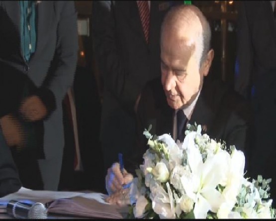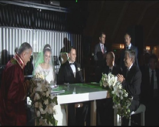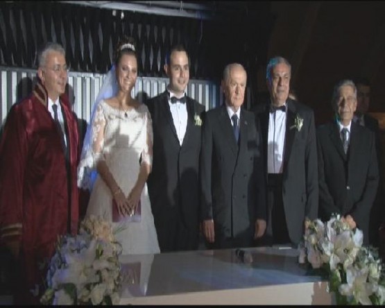 Konvoy eşliğinde nikah töreninin yapılacağı Büyük Kulüp'e gelen Bahçeli'yi kapıda Tuğrul Türkeş karşıladı. Yaklaşık 400 davetlinin katıldığı törende MHP'li vekillerin yanı sıra eski CHP milletvekili İlhan Kesici de Türkeş'i yalnız bırakmadı. MHP'nin kurucusu Alparslan Türkeş'in torunu olan Osman Türkeş'in nikah şahitliğini MHP lideri Bahçeli yaparken, gelinin şahitliğini Ahmet Münip Oniz üstlendi.