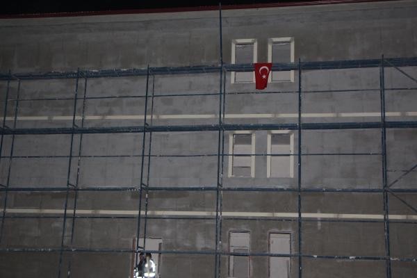 BOLU'nun Mudurnu İlçesi'ne bağlı Taşkesti Beldesi'nde inşaatta çalışan işçilerin bayrak ile ilgili sözleri gerginliğe neden oldu. Yüzlerce kişi okulun etrafında toplanırken, işçiler okulunun çatısına sığındı.