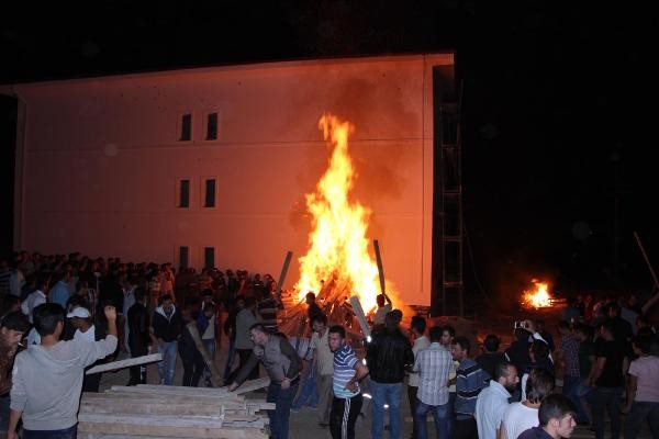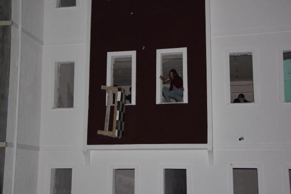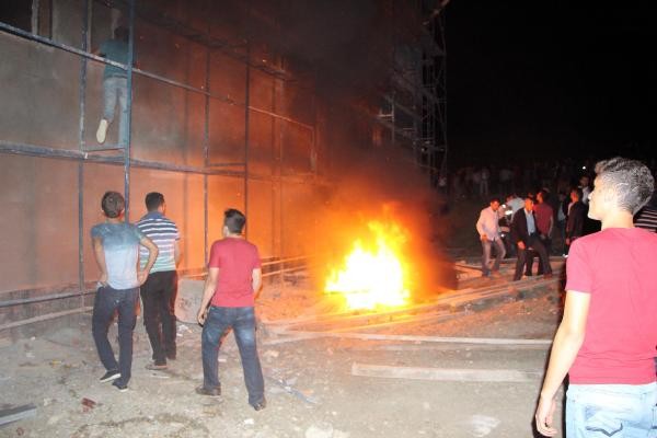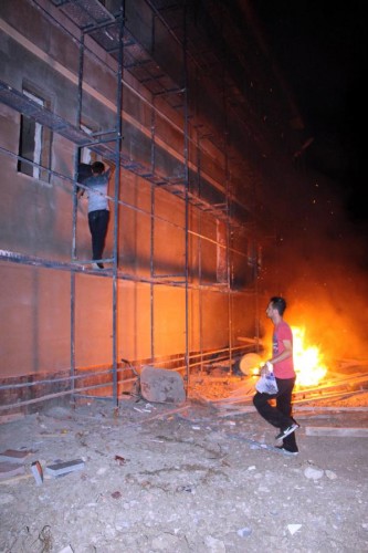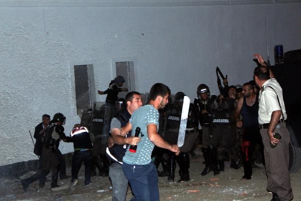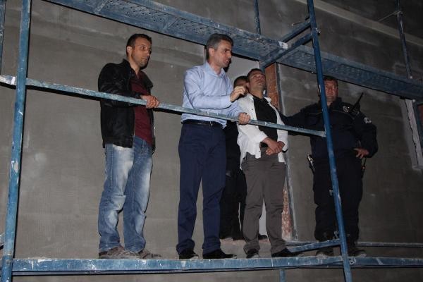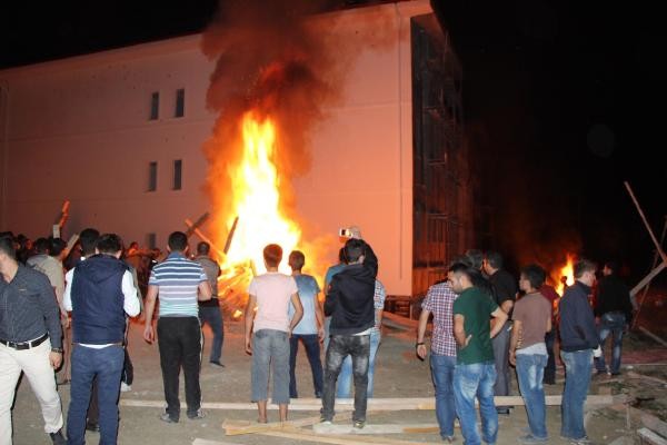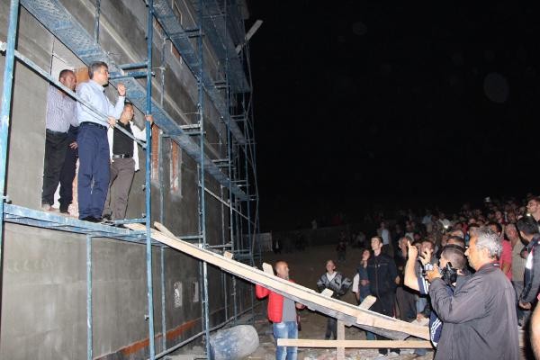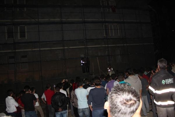 Tüm uyarılara rağmen okulun etrafında toplananlar inşaatın tüm çıkışlarını tuttu. Gruptaki bazı kişiler inşaatın dışındaki iskele demirlerinden tırmanarak içeri girerken, tahta merdivenlerden inşaata girenler de inşaatta çalışan 8 işçiye ulaşmak istedi. İşçiler 3 katlı inşaatın çatısına çıkarak saklanırken, inşaatta bulunan polis ve jandarmalar öfkeli grubu biber gazı kullanarak engelledi. İnşaata girenler işçilerin eşyalarını pencerelerden dışarı attı.