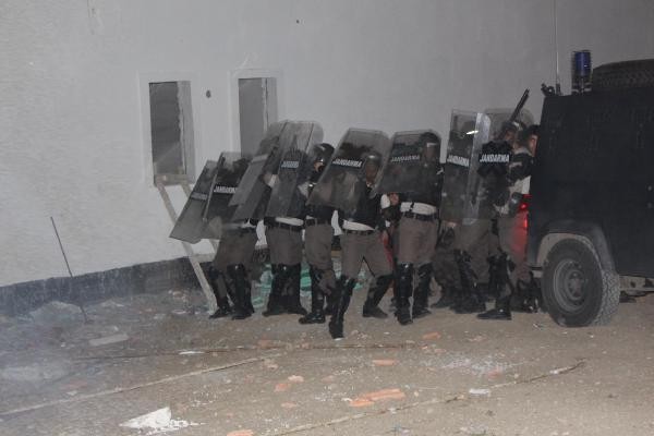 Zırhlı araç olay yerine gelerek inşaata yaklaştı. Saat 03.20 sıralarında jandarma ve polislerin arasında geçen inşaat işçileri zırhlı araca binerken, bazı kişiler taş attı. Bazı kişiler zırhlı araca doğru koşarken, polis biber gazı kullandı. Zırhlı araç inşaat işçilerini aldıktan sonra hızla uzaklaşarak işçileri götürdü. Yaklaşık 7.5 saat süren gerginlik işçilerin inşaattan götürülmesiyle sona erdi.
