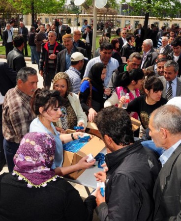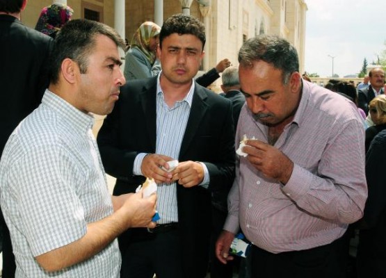 Camiden çıkanlara MHP'li Hüseyin Sözlü'nün ekip arkadaşları, iki bisküvi arasına lokum konularak hazırlanan 'püskevit'lerden ikram etti. MHP İl Başkanlığı da lokum dağıttı. Vatandaşlar, aldıkları püskevitlerin ambalajlarını açıp, yedi.