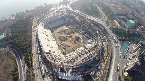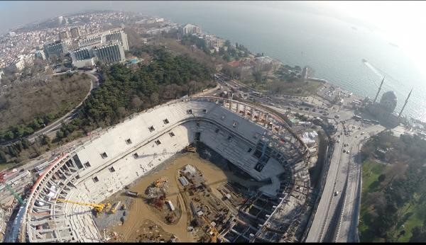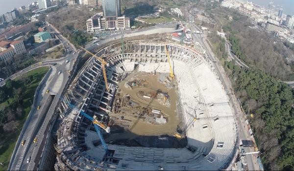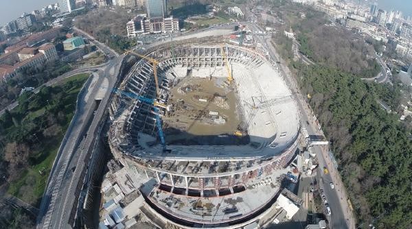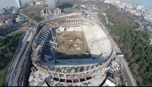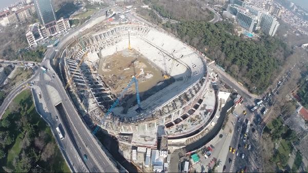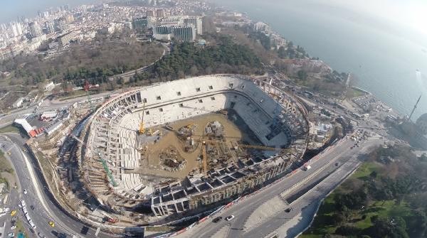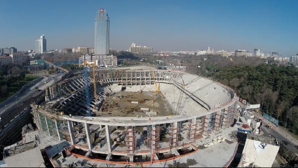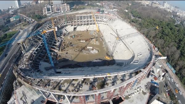DOLMABAHÇE’de yapımına hızla devam edilen Beşiktaş’ın yeni stadı Vodafone Arena'nın kaba inşaatının büyük bölümü tamamlandı. Çalışmaların 24 saat aralıksız sürdüğü ve Türkiye’nin ilk akıllı stadı olması özelliğini taşıyacak 41 bin 903 kişi kapasiteli stadyumunun bu yıl içinde tamamlanması bekleniyor.