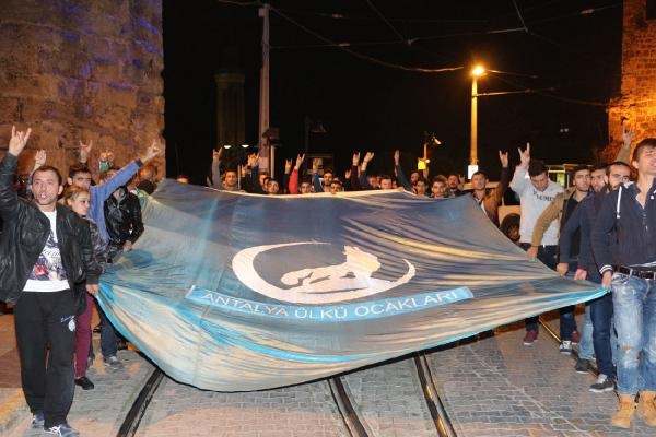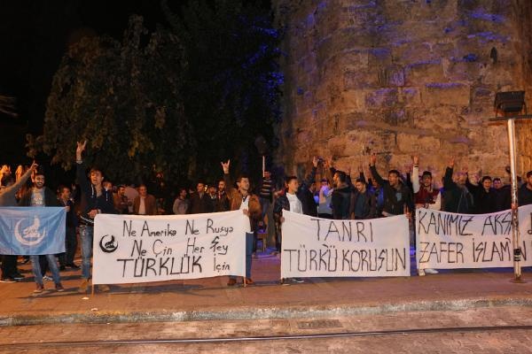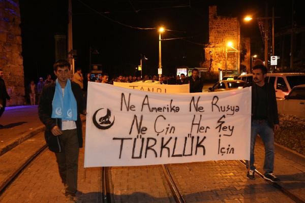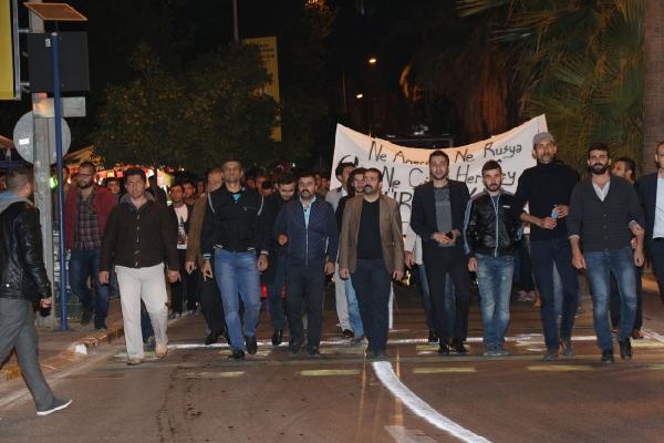ANTALYA'da Ülkü Ocakları üyesi 100 kişilik grup, Rusya Konsolosluğu’na yürüyerek, Rusya'nın Suriye'de yaptığı hava harekatını protesto etti.