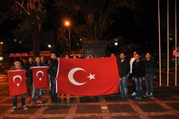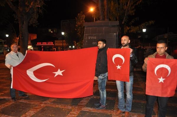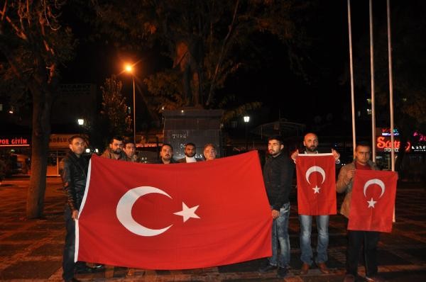 Cumhuriyet Meydanı Atatürk Anıtı önünde toplanan aralarında Büyük Birlik Partisi Karaman İl Başkanı Abdi Emin Aydoğdu'nun da bulunduğu grup ellerinde Türk bayraklarıyla teröre tepki gösterdi.