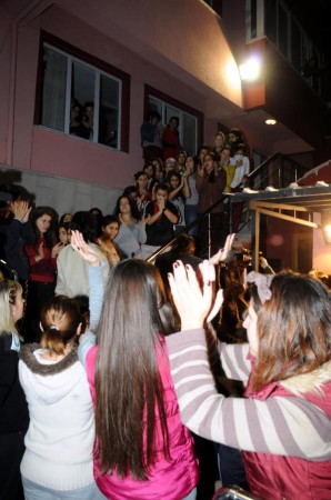 Zonguldak'ta, Yüksek Öğrenim Kredi ve Yurtlar Kurumu'na ait yurta kalan kız öğrenciler, binada yaşanan kalorifer ve su arızaları ile internet, yemek, yatak gibi sorunları, gece yarısı pijamalarıyla dışarıya çıkıp alkış ve sloganlarla protesto etti. 'MÜŞTERİ DEĞİL ÖĞRENCİYİZ" Bahçelievler Mahallesi'ndeki yurtta kalan Bülent Ecevit Üniversitesi öğrencileri, saat 23.30 sıralarında dışarıya çıkarak yurt önünde eylem yaptı. Binada sık sık kalorifer ve su arızaları yaşandığını, internetin olmadığını, yemekhanenin yetersiz kaldığını, yatakların eski ve pis olduğunu, fişle kantinden yiyecek alamadıklarını ileri süren öğrenciler, alkış ve sloganlarla tepki gösterdi. Bir öğrenci, "Hergün sularımız kesiliyor. Kaloriferler yanmıyor. Yataklarımız 15-20 senelik. Dolaplar eski. Yurt çok pis. 300 kişi var ama 50 kişilik yemek çıkıyor" diyerek tepkisini dile getirdi. Bir kısmı binanın önüne, bir kısmı da pencerelere çıkarak, 'Müşteri değil öğrenciyiz' sloganları atan öğrencilere, çevredeki evlerde kalan bazı arkadaşları da destek verdi. Yurt sorumlusu Hatice Gökçen ve diğer görevliler, tadilatın ardından 2 ay önce hizmete giren binadaki sorunların çözümü için çalıştıklarını belirterek öğrencileri eylemlerini sonlandırmalarını istedi. Hatice Gökçen, kaloriferdeki arızanın giderilmesi için dün akşamdan bu yana çalışıldığını, yeni 300 yatağın da geldiğini ve eskileriyle değiştirileceğini söyledi. Sorunlarının bir an önce çözülmesini isteyen öğrenciler, bir süre daha sloganlarla tepki gösterdikten sonra eylemi bitirerek binaya girdi. Yurt önünde önlem alan polis ekiplerinin uyarısıyla diğer öğrenciler de bina önünden ayrılarak evlerine gitti.