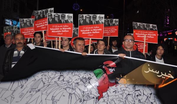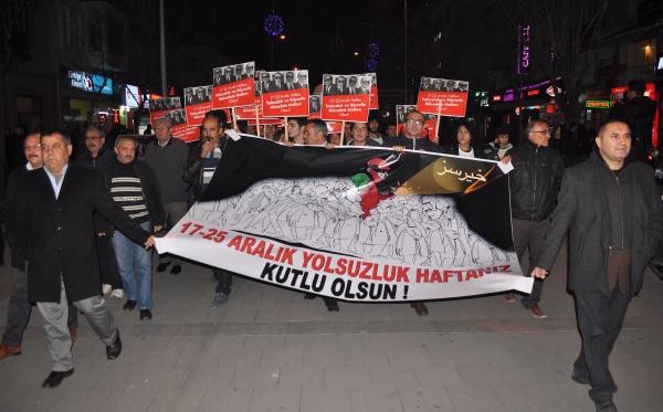 UŞAK'ta yaklaşık 500 kişilik grup, 17 Aralık operasyonunun birinci yıl dönümünde ayakkabı kutularıyla yürüyüş düzenledi. Sık sık 'Hırsız var' diye bağıran grup, basın açıklamasının ardından sessizce dağıldı.