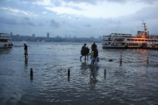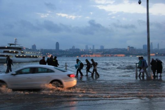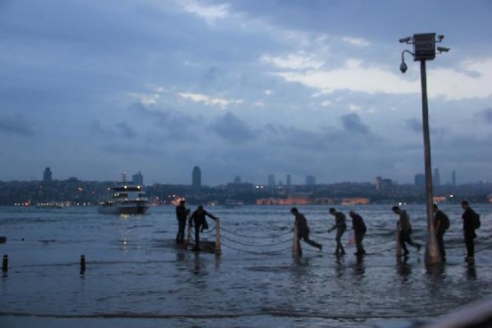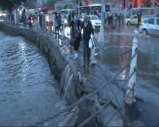 ÜSKÜDAR'da saat 20.00 sıralarında bastıran sağanak yağış, önceki gün meydana gelen "tsunami" benzeri görüntülere yol açtı. Sahil yolu taşınca, deniz ile kara adeta birleşti; yayalar ve araçlar zor durumda kaldı. Sadece 5 dakika süren sağanak sonrası, sular yeniden çekildi.