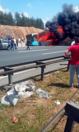500 T numaralı halk otobüsünün ön kısmından TEM otoyolu Kavacık mevkiinde bir anda alevler çıkmaya başladı. Otobüsün şoförü Abidin Arslan, aracı sağ taraftaki bariyerlere çarparak durdurdu ve kapıları açarak yolcuların inmesini sağladı. Çarpmanın etkisinden yaralananlar, dumanlardan etkilenenler oldu. Yaralılar Ümraniye ve Beykoz devlet hastanelerine kaldırıldı.