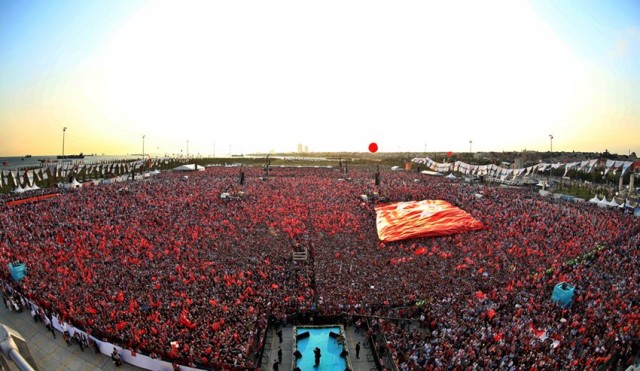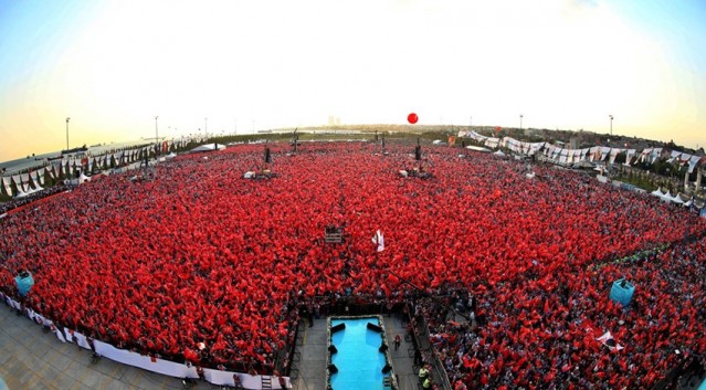 Saat 16:00'da başlayan miting için öğle saatlerinden itibaren vatandaşlar alanına geldi. Mitingi gelenlere Türk bayrakları dağıtılırken miting alanına asılan dev pankartlarda Türkiye'nin 81 ilinin isimleri yer aldı.