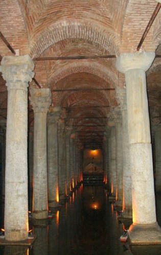 Yerebatan Sarnıcı İstanbul`da ki en büyük kapalı sarnıçtır. Ayasofya binasının batısındaki küçük binadan girilir. Sütun ormanı görünümündeki mekanın tavanı tuğla örülü, çapraz tonozludur. Zamanında civardaki bir bazilikadan dolayı bu isimle anılmıştır.