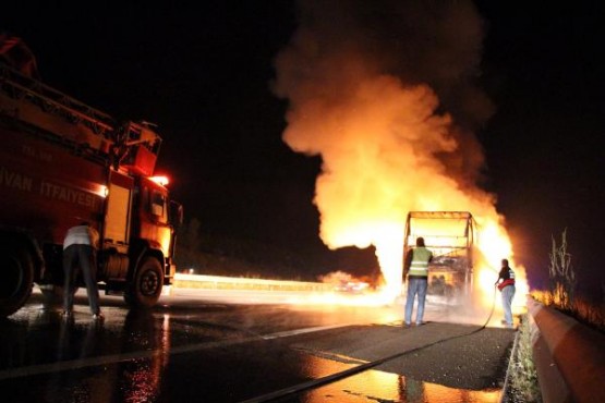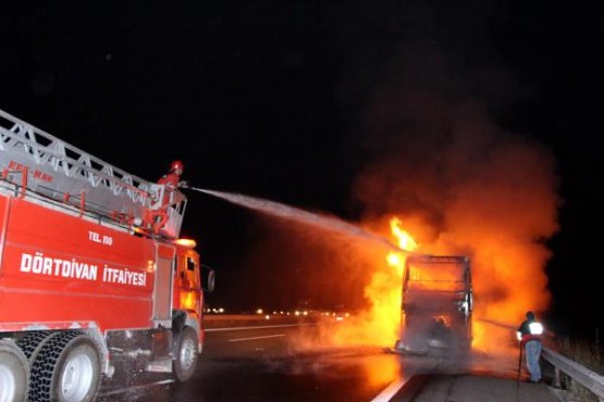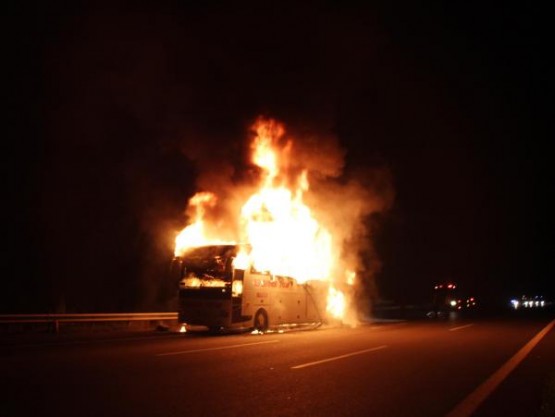 - BOLU'da TEM Otoyolu'nda motor bölümünü alev alıp yanan yolcu otobüsünde 51 kişi ölümden döndü.