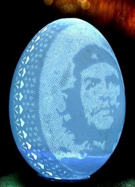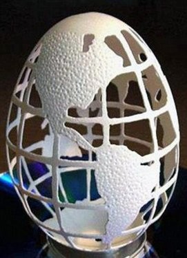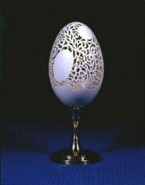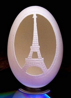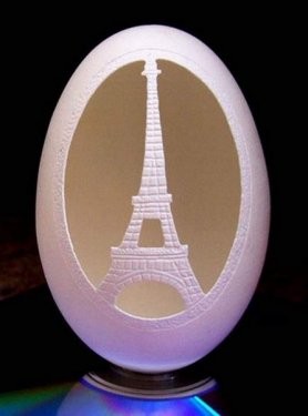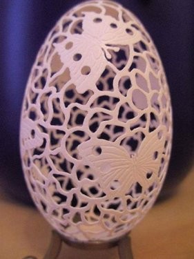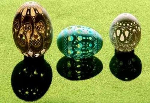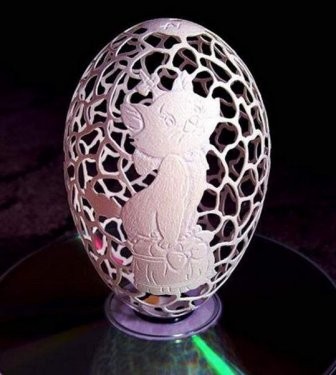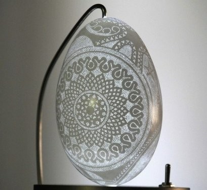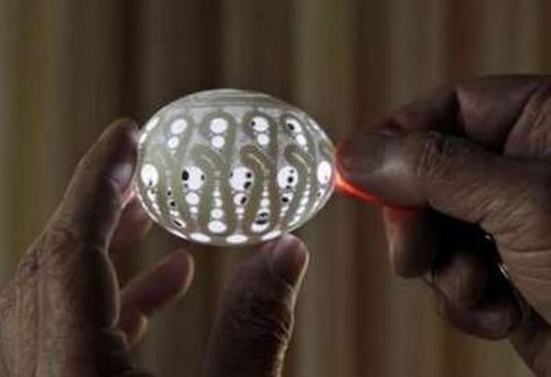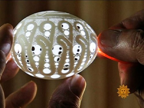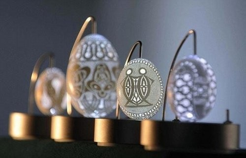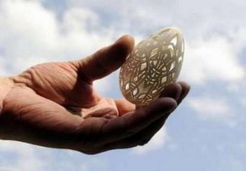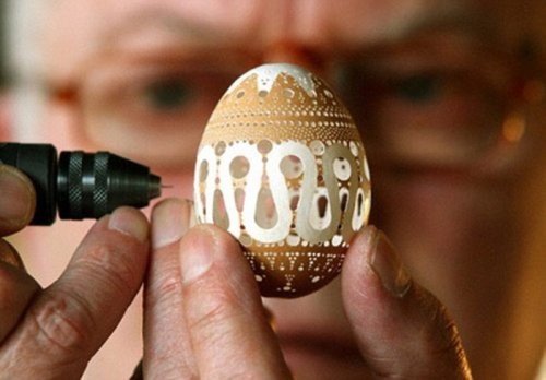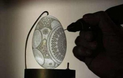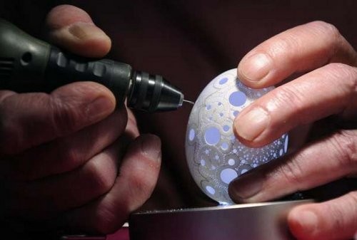 Yumurtanın önce tepesini ve altını delerek içindeki tüm sıvıyı boşaltan sanatçı, ardından iğne uçlu tabancasyla sanatını icra ediyor ve ortaya birbirinden yaratıcı bu eserler çıkıyor.