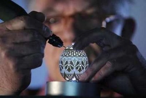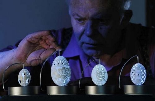 72 yaşındaki Slovak sanatçı Franc Grom'ün tuvali yumurta kabukları. Grom'ün 'yumurta sanatı' sabır ve kararlılık isteyen bir uğraş.