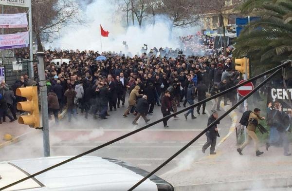 Zaman gazetesi önünde, Kayyumu protesto eden ve ellerinde "Özgür basın susturulamaz" pankartları bulunan kalabalığa, polis dağılmaları yönünde uyarıda bulundu. Aralarında kadınların da bulunduğu kalabalık dağılmayınca polis, biber gazı ile müdahalede bulundu. Müdahale sonrası kalabalık ara sokaklara girerek dağıldı.