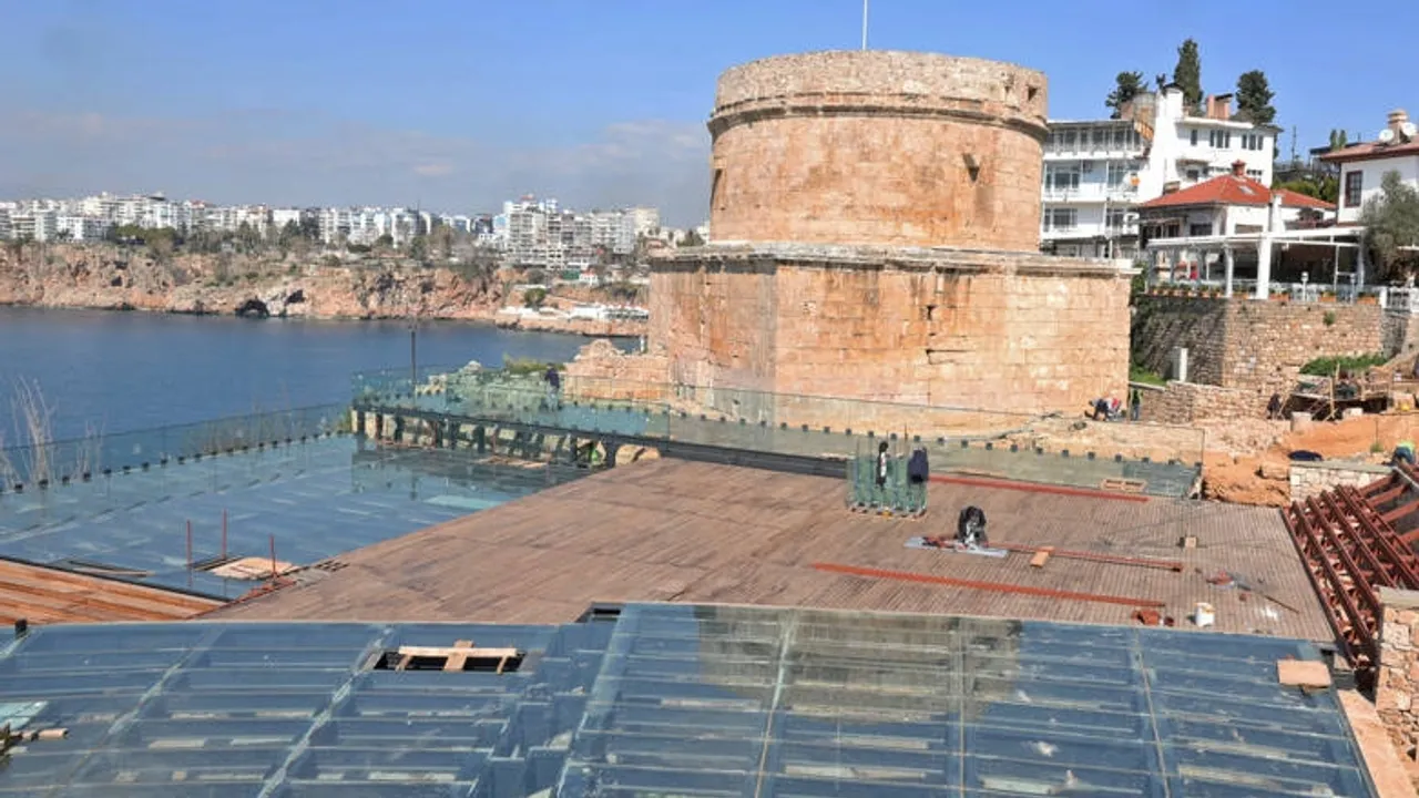Antalya Büyükşehir Belediyesi tarafından yapımı süren “Hıdırlık Kulesi Çevresi Arkeolojik Kazı ve Seyir Terası Projesi” hızla ilerlerken, arkeolojik kazı çalışmasında yeni buluntulara rastlandı, Geç Roma Dönemine ait olduğu düşünülen yazıtlı mozaik gün yüzüne çıkarıldı.ANTALYA (İGFA) - Büyükşehir Belediyesi’nin, Antalya’nın kültürel mirası ve tarihi yapılardan Hıdırlık Kulesi’ni turistik çekim merkezi haline getirmek için 2020 yılında Koruma Kurulu kararı doğrultusunda başlattığı arkeolojik kazı çalışmaları sonunda, bölgede antik dönem kalıntıları ve yapılar ortaya çıkmıştı. Antalya Büyükşehir Belediyesi tarafından yürütülen Hıdırlık Kulesi Çevresi Arkeolojik Kazı ve Seyir Terası Projesi ile ziyaretçiler yürüyüş yolundaki cam yüzeylerde kalıntıları incelerken, falezler üzerinde oluşturulan bölümde ise Akdeniz manzarasını seyredebilecek.