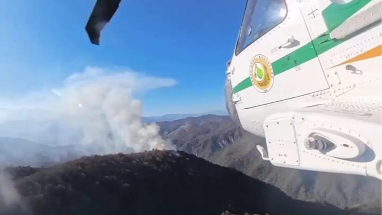 Bakanlığın paylaşımına göre, Orman Genel Müdürlüğü envanterinde bulunan 2 yangın söndürme uçağı ve 1 su atar helikopter, yangınla mücadele çalışmalarına sahada katıldı.